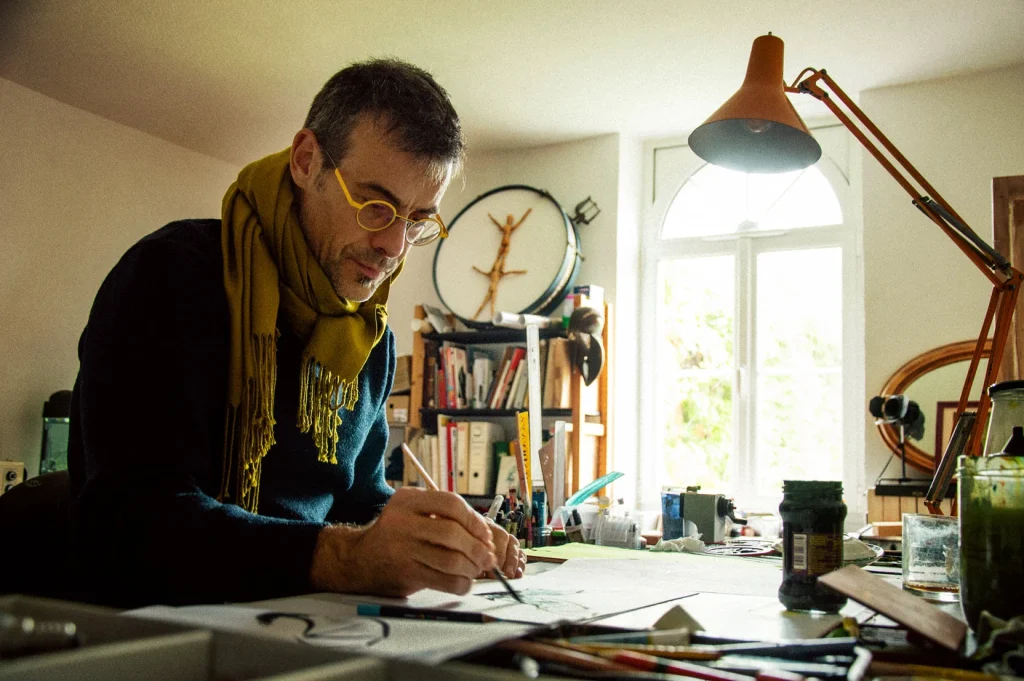 M. Jean GILBERT, artiste peintre, illustrateur, scénographe et professeur d’arts plastiques en collège à Vierzon, en collaboration avec Mme Elisabeth BOUCARD, graphiste à Bourges :